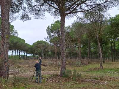 Heute wurde ausgeschlafen, es wurde gestern spät nach Mitternacht, um das Neue Jahr zu begrüssen. Das Wetter war nicht so toll für eine Bikertour. So fuhren wir mit dem Geosoli auf die Cachetour in den Park National de Doñana. Der Pinienwald mit dem goldenem Sand sah toll aus. Der erste Cache war Terrain 5. Zum Glück hatten wir die Angelroute bei uns. Alle nachfolgenden auch, so gab es insgesamt 14 Caches mit Terrain 5. Nebbiolo fischte alle problemlos. Dann gab es noch ein paar 'normale' am Fusse der Pinien. Wir loggten am 1.1.26 den 28'000xsten Cache. Zufrieden kehrten wir zurück auf den Campingplatz. Noch etwas umparkiert und wir hatten einen wunderbaren Ausblick auf das Meer mit den etwas weit entfernten grossen Schiffen.