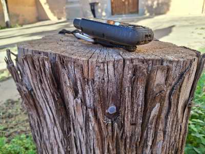 Bei der Kirche wartete noch ein Cache im Baumstrunk auf uns. Hier stellte sich weniger die Frage nach dem Versteck, sondern vielmehr: Wie kommen wir an das Logbuch heran? Ein kleines Geduldsspiel.